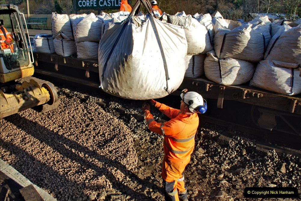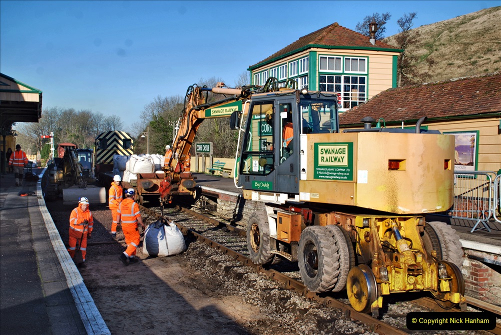 Swanage Railway Swanage Railway from 2020 » 2022 January 13 Corfe Castle station track renewal. Day 4
